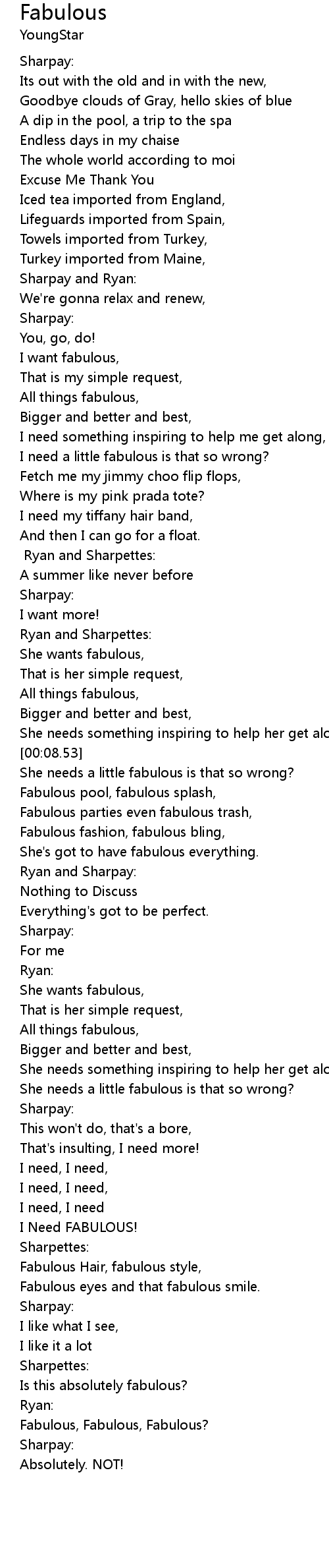 I want fabulous, |