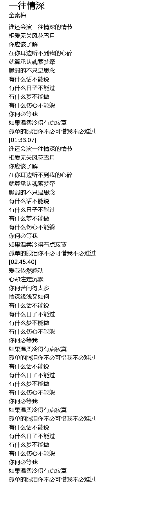 | [02:33.98] | 孤单的眼泪你不必可惜我不必难过 |