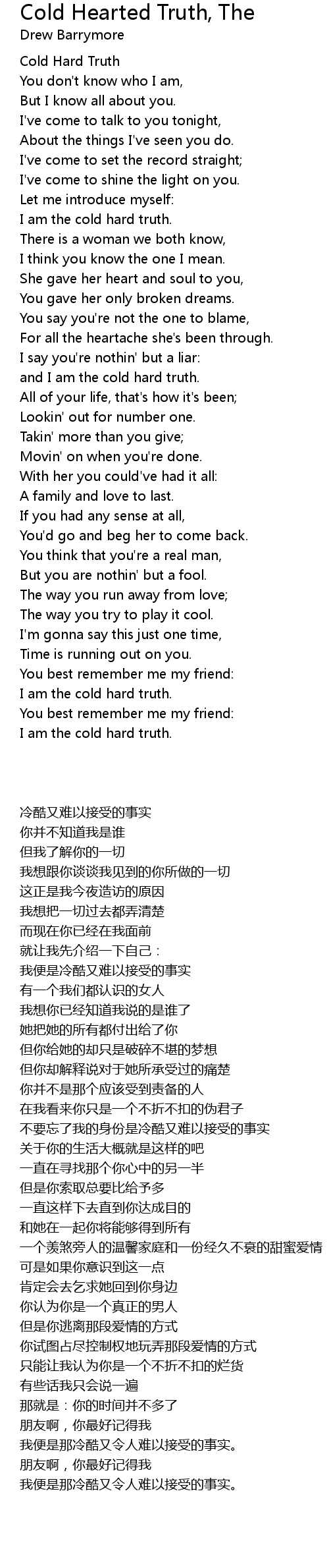 and I am the cold hard truth. |