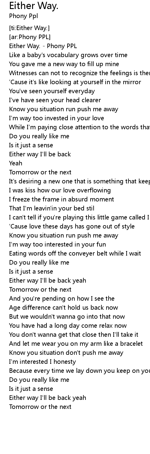 | [02:43.836] | Because every time we lay down you keep on your wedding ring |