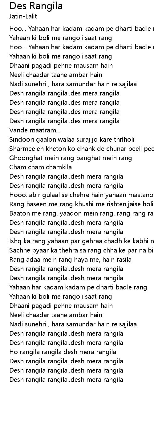 Ho rangila rangila desh mera rangila |