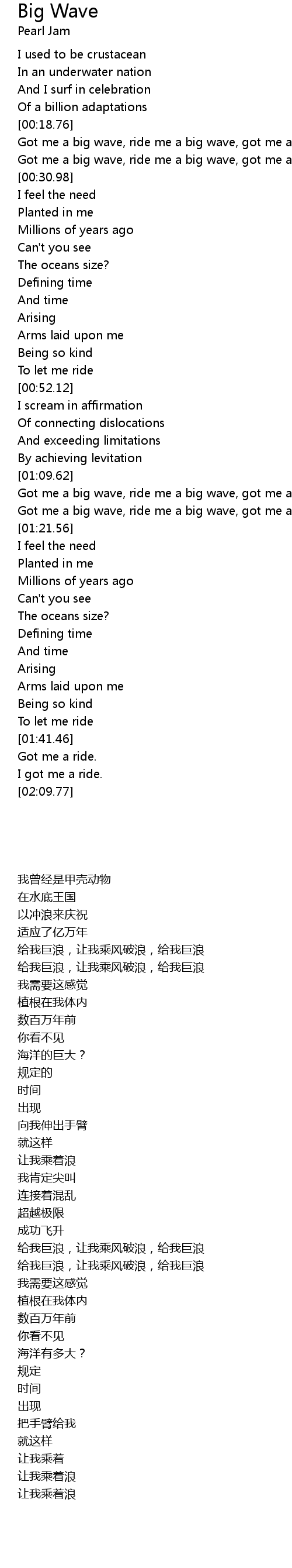 | [00:19.62] | Got me a big wave, ride me a big wave, got me a big wave. |