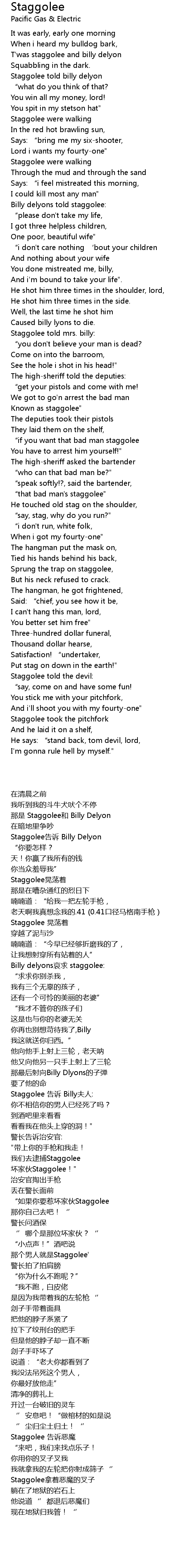 | [00:25.27] | Staggolee told billy delyon |