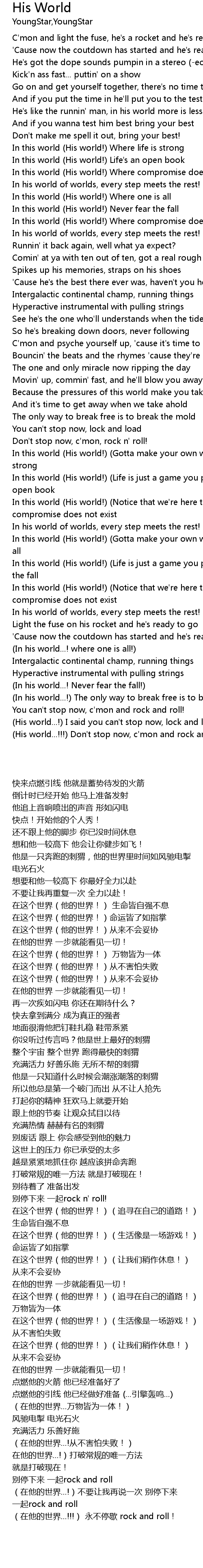 | [02:19.000] | In this world (His world!) (Gotta make your own way!) Where life is strong |
