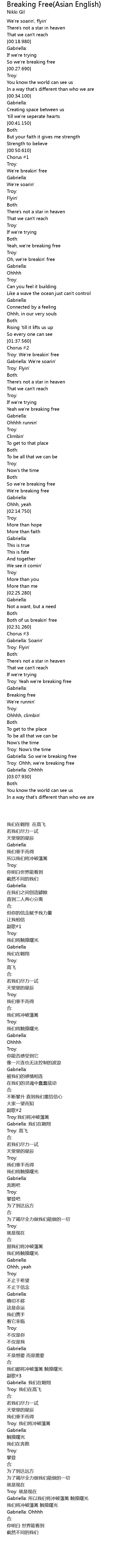 Gabriella: So we're breaking free |