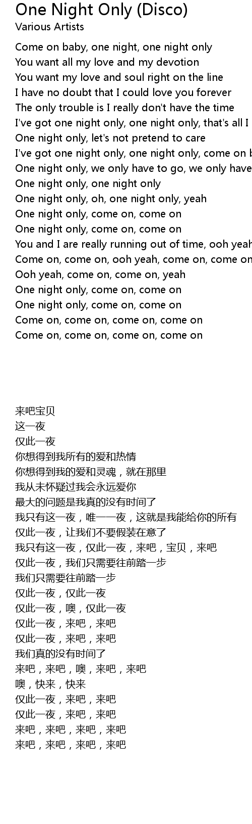 One night only, come on, come on |