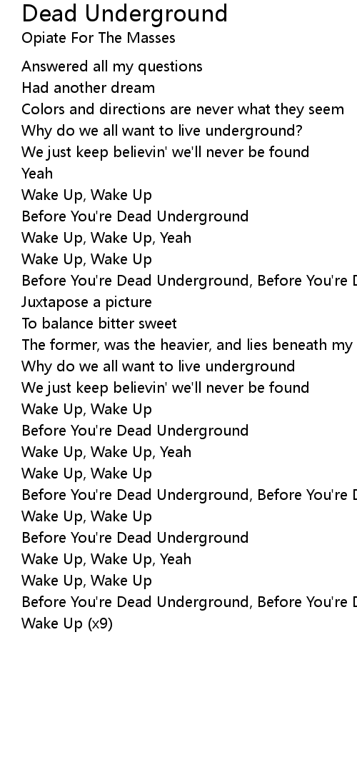 Before You're Dead Underground, Before You're Dead Underground, Yeah |