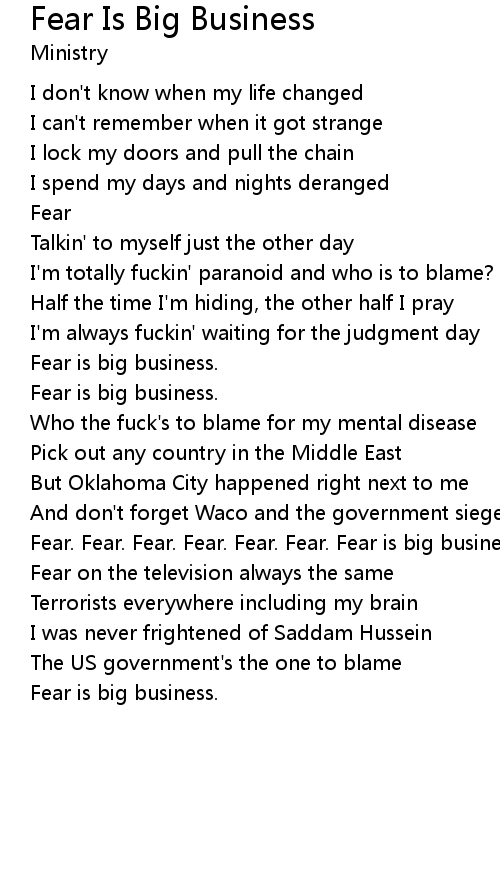 | Fear. Fear. Fear. Fear. Fear. Fear. Fear is big business. | |