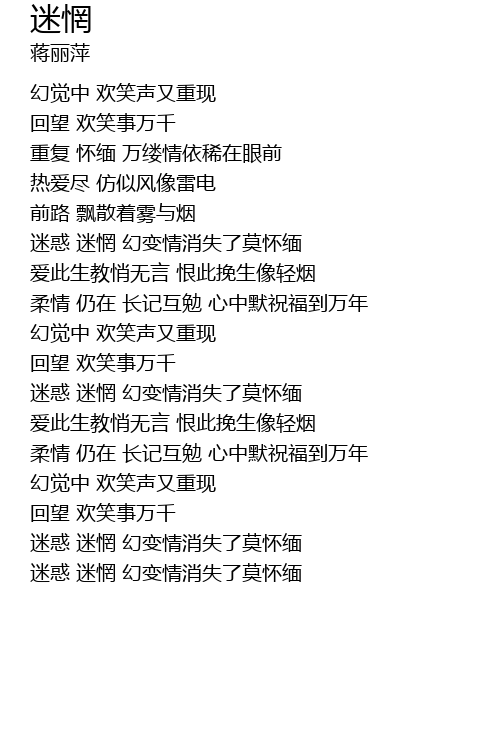 | [01:37.33] | 迷惑 迷惘 幻变情消失了莫怀缅 |