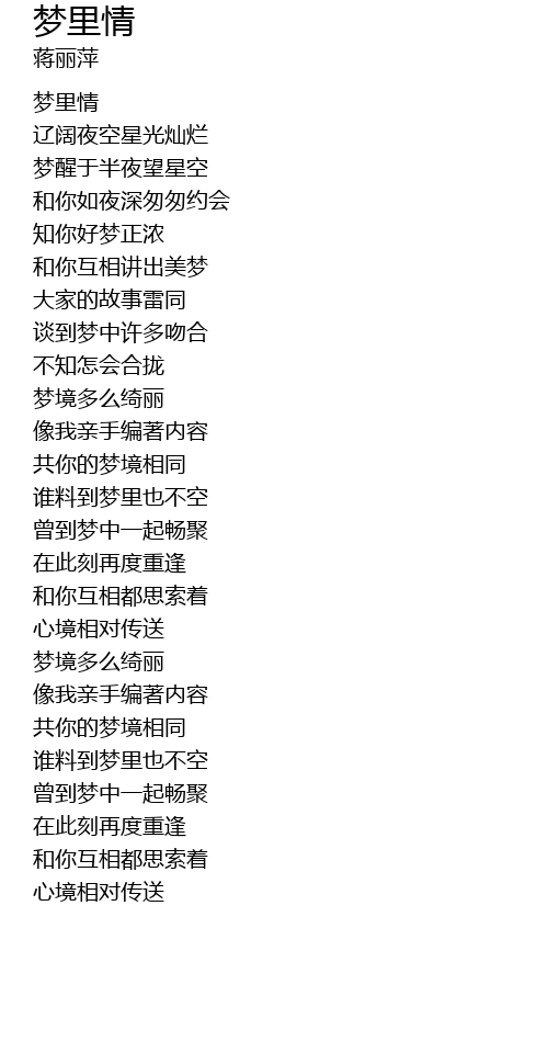 | [00:01.19] | 梦里情 |