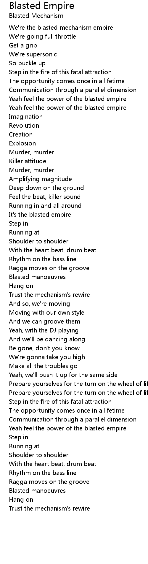 Yeah feel the power of the blasted empire |