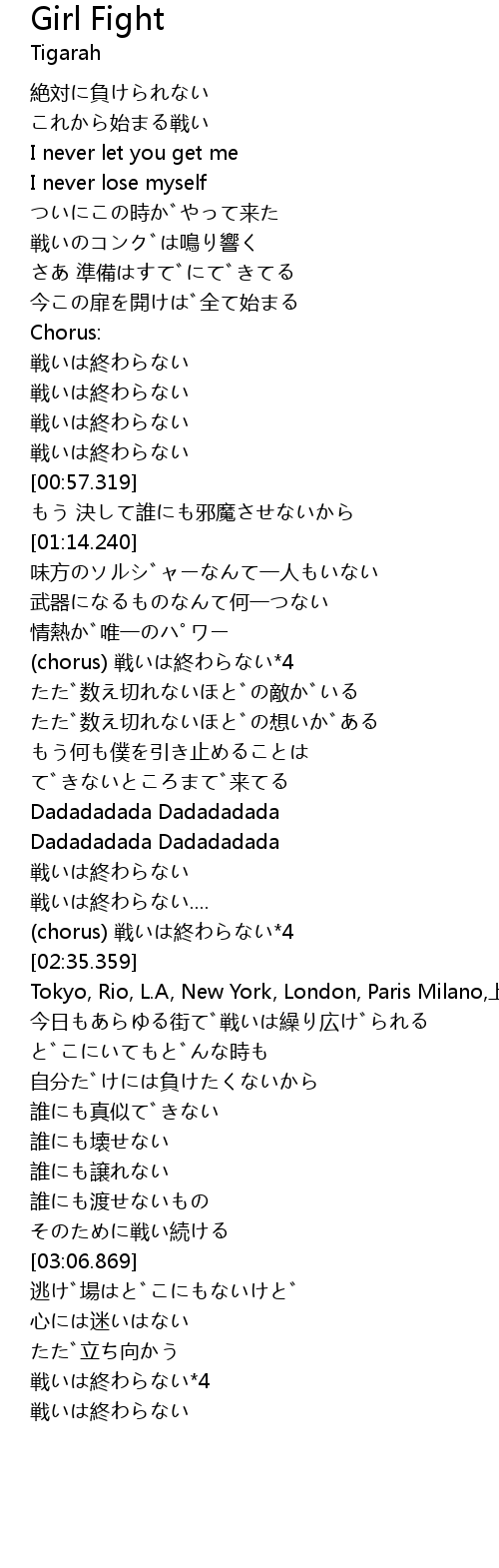 | [01:29.071] | (chorus) 戦いは終わらない*4 |