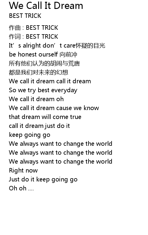 | We call it dream call it dream | |