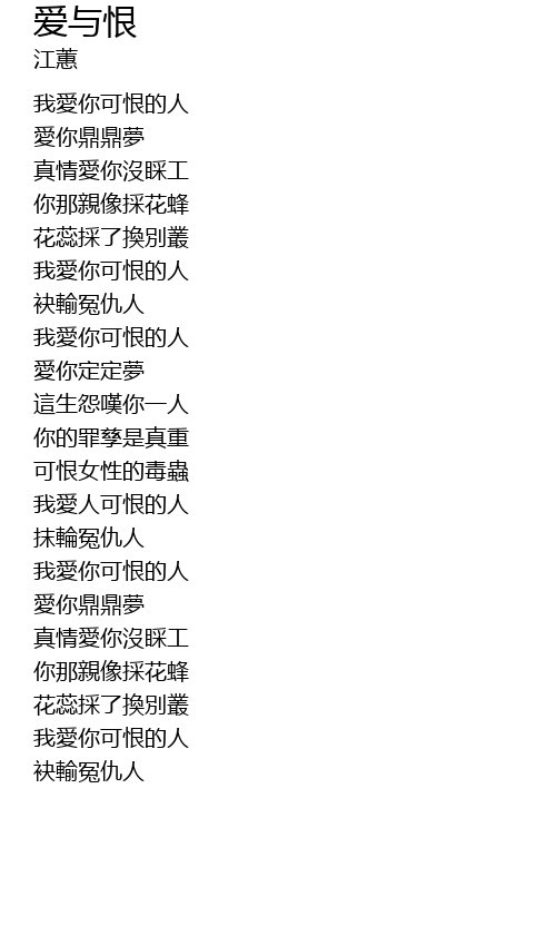 | Song | 爱与恨 |