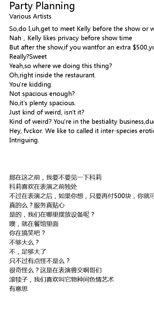 | [00:06.33] | But after the show, if you wantfor an extra 500, you can fvck Kelly |