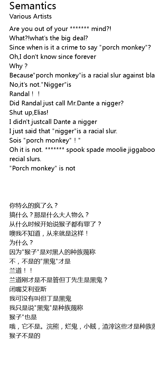 | [00:08.20] | Because"porch monkey"is a racial slur against black people |