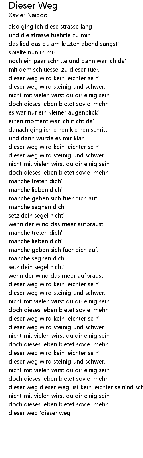 dieser weg dieser weg ist kein leichter sein'nd schwer. |