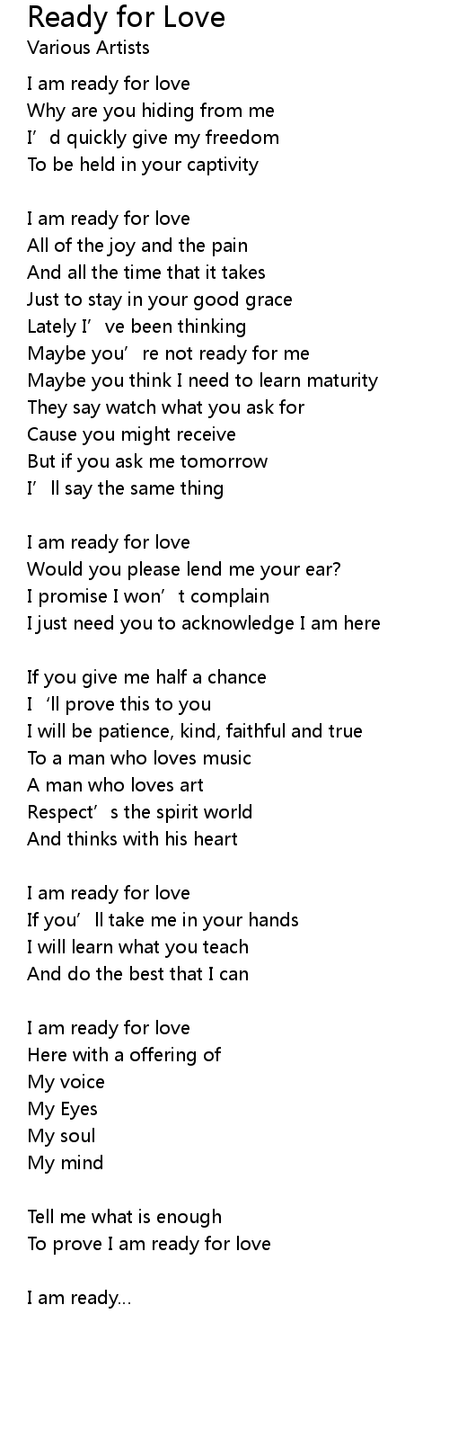 | I am ready for love | |