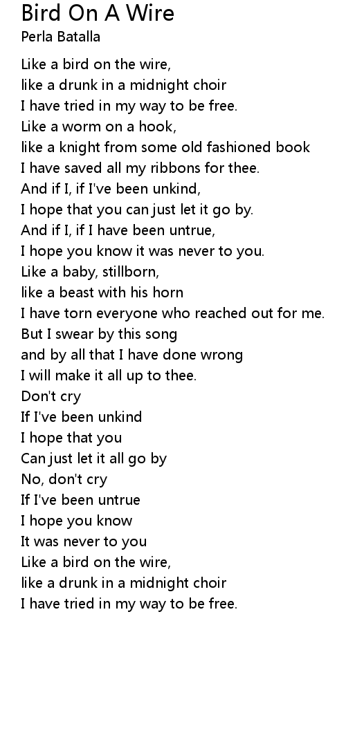 Like a bird on the wire, |