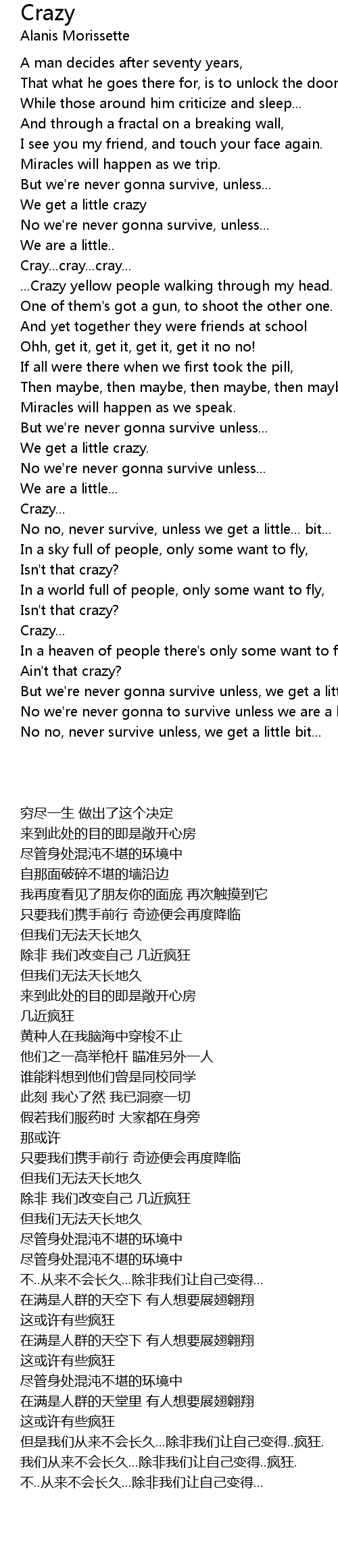 But we're never gonna survive unless, we get a little crazy.. crazy.. |