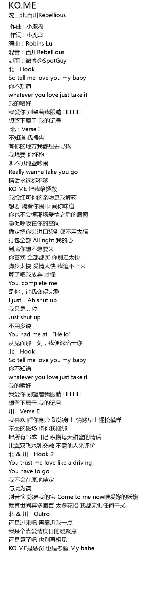 | [02:40.000] | KO ME shì chéng fá yě shì kǎo yàn My babe |