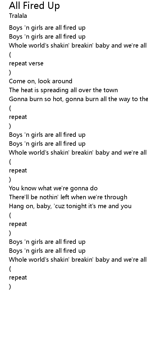 Whole world's shakin' breakin' baby and we're all fired up |