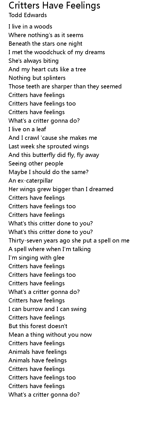 Critters have feelings too |