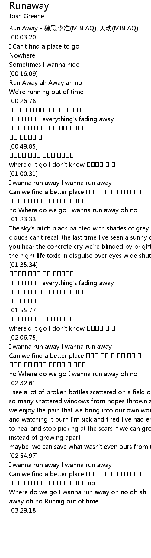 | [00:00.82] | Run Away wei chen, li zhun MBLAQ, tian dong MBLAQ |