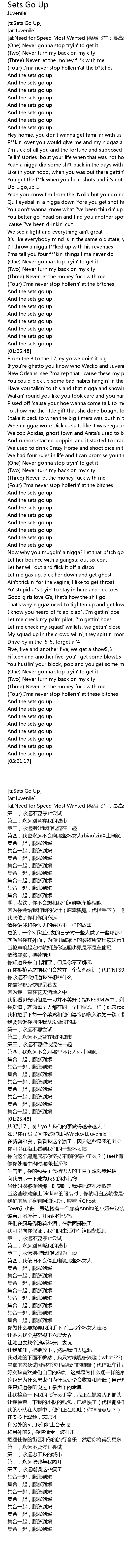 | [00:27.07] | F**kin' over you would give me and my niggaz a rush |