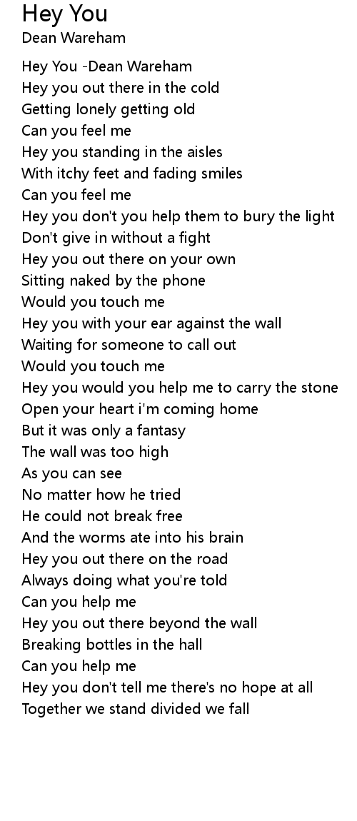 Hey you with your ear against the wall |