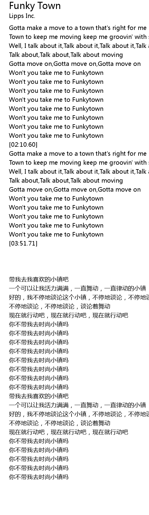 Won't you take me to Funkytown |