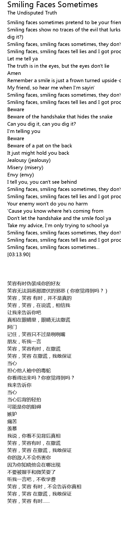 Smiling faces, smiling faces tell lies and I got proof |