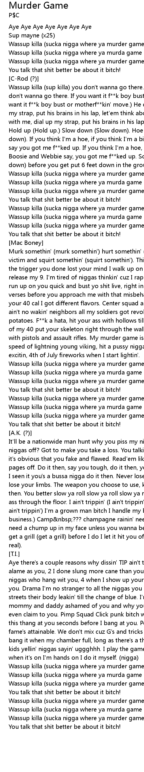 Wassup killa (sucka nigga where ya murda game at?) |