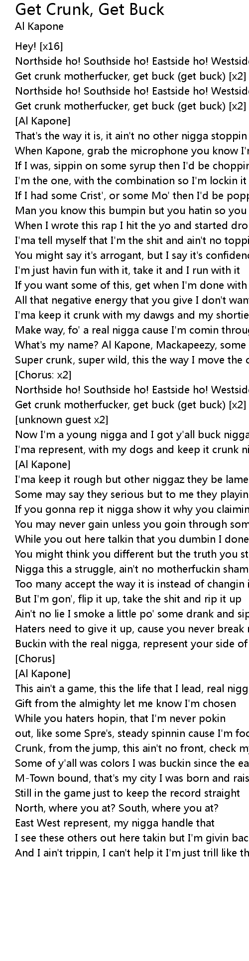 Get crunk motherfucker, get buck (get buck) [x2] |