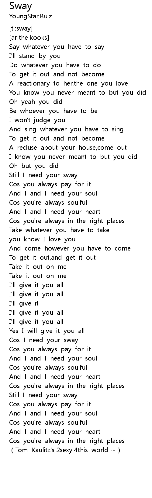 | [02:02.35] | Cos I need your sway |