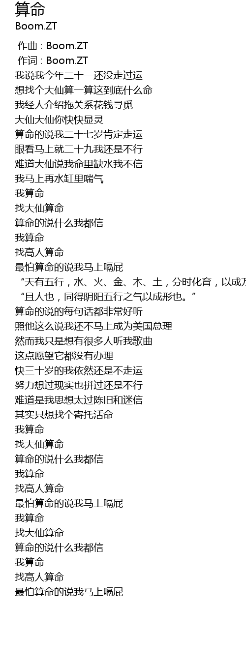 | [02:45.17] | 最怕算命的说我马上嗝屁 |