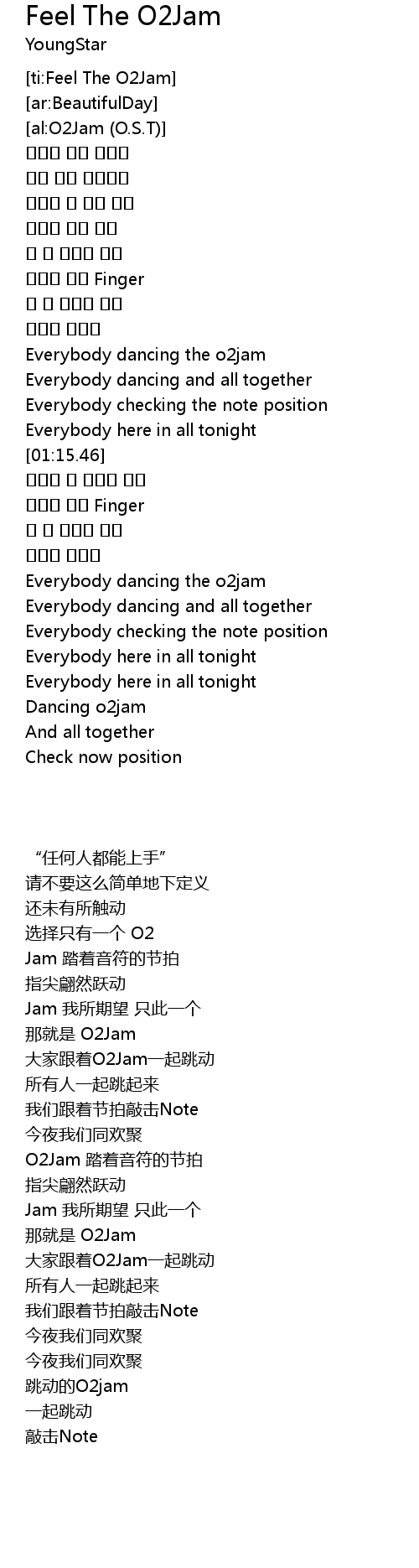 | [01:01.22] | Everybody dancing the o2jam |