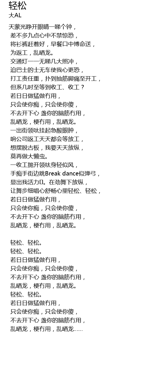 | ràng wǔ bù xì chàng xīn shū chàng xīn lǐ qīng sōng qīng sōng, | |