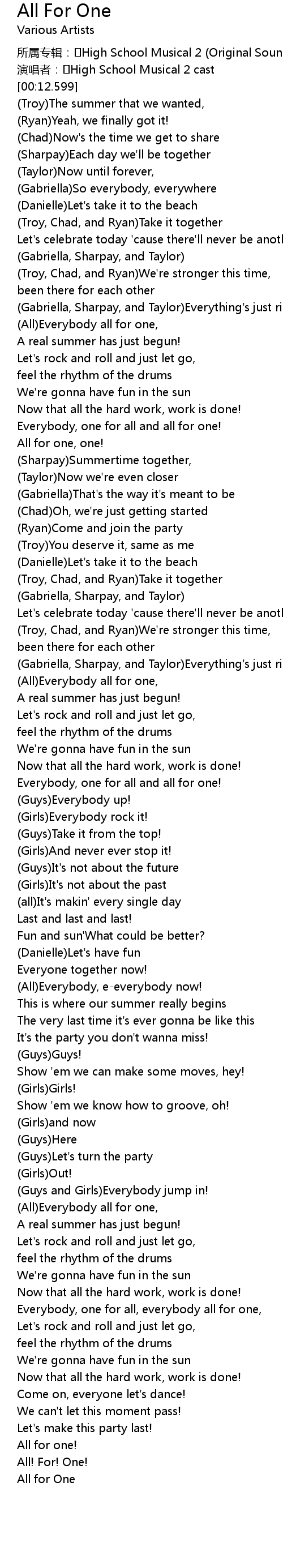 | [00:09.119] | 演唱者: High School Musical 2 cast |