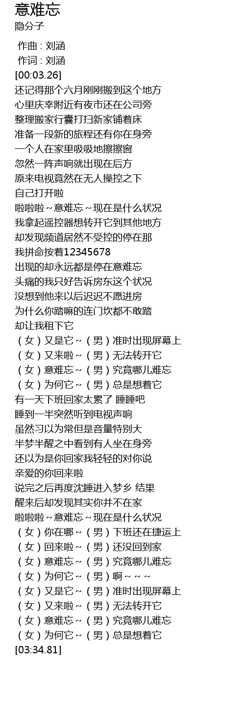| [00:53.22] | 出现的却永远都是停在意难忘 |
