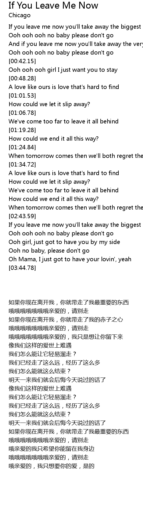 If you leave me now you'll take away the biggest part of me |