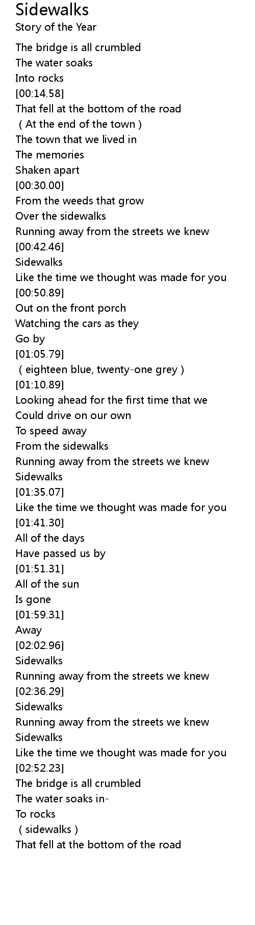| [02:45.36] | Sidewalks |