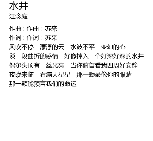 | tán yī duàn qū zhé de gǎn qíng hǎo xiàng diào rù yí gè hǎo shēn hǎo shēn de shuǐ jǐng | |