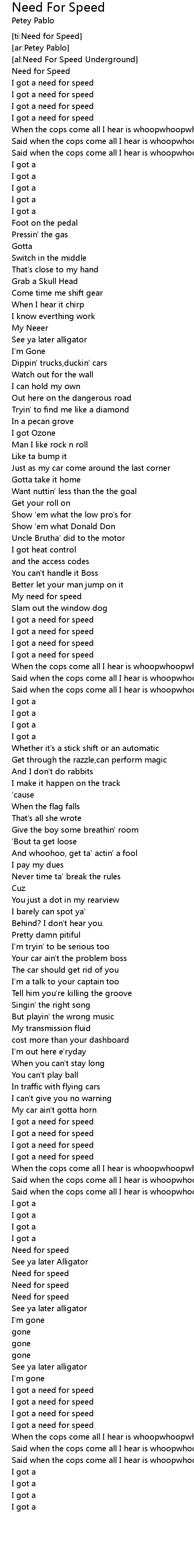 [ti:Need for Speed] |