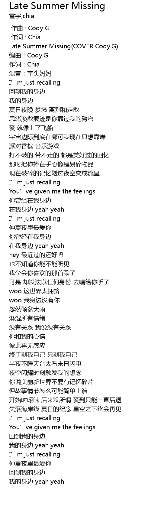 | [00:00.622] | Late Summer Missing COVER Cody. G |