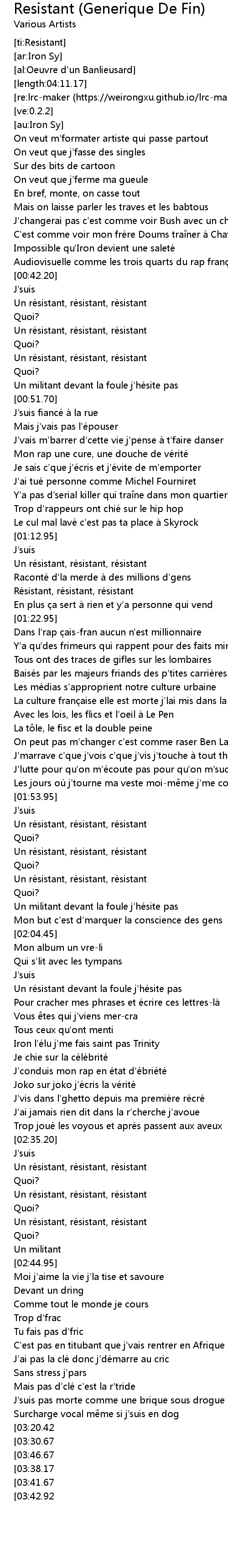 | [02:41.70] | Un résistant, résistant, résistant |