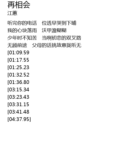 | [03:55.44][03:15.34][01:40.16] | 再相会 时间经过彼多 |