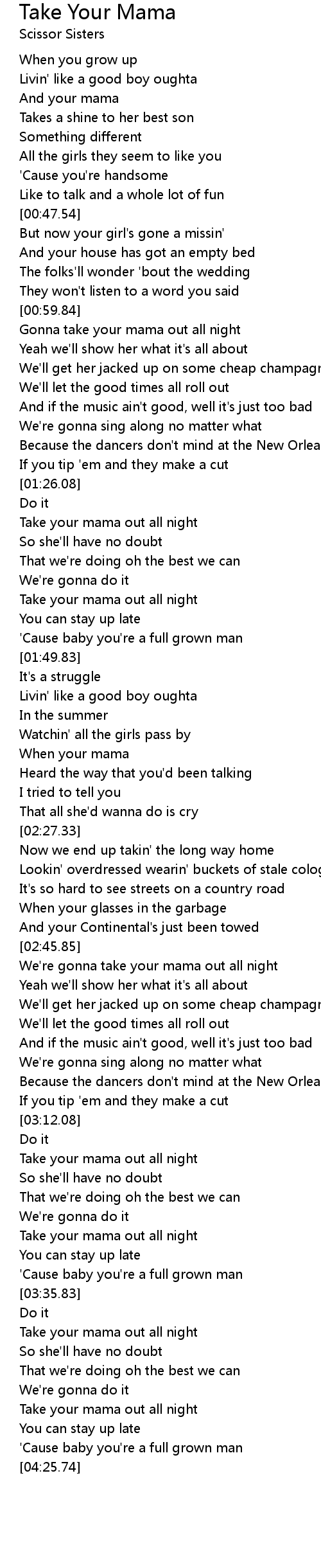 Take your mama out all night |