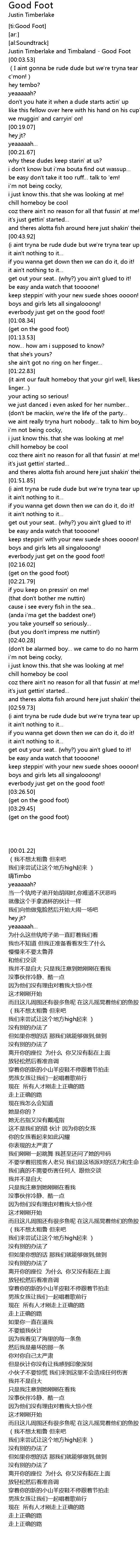 | [00:01.22] | Justin Timberlake and Timbaland Good Foot |