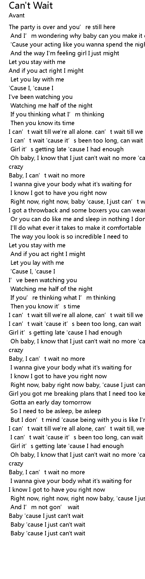| [00:53.90] | I can’t wait 'cause it’s been too long, can wait |
